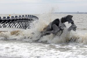 Shock on the Shore: The Sea Serpent Emerges.Beachgoers were left frozen in awe as a colossal, serpentine creature broke the ocean’s surface