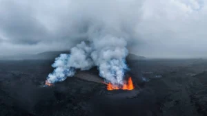 A month later, in January 2024, another fissure opened in the same crater chain. This time, lava reached the outskirts of Grindavík, engulfing three homes. Fortunately, thanks to the early evacuation, the houses were empty and no one was injured. By the following morning, the lava flow stopped just short of spreading deeper into the town. Experts credited Iceland’s robust monitoring network — a combination of ground sensors, satellite imaging, and real-time drone mapping — for preventing casualties. The eruption lasted less than 50 hours, but the psychological impact on residents was profound.